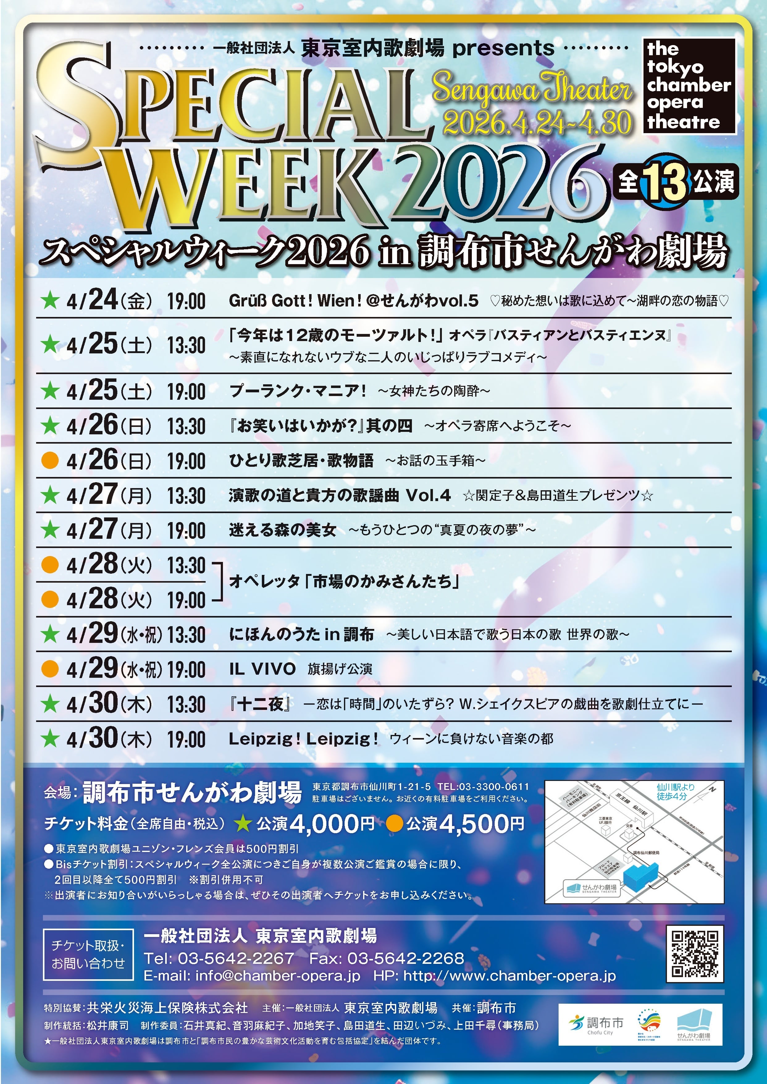 一般社団法人 東京室内歌劇場が主催するスペシャルウィーク 2026 in 調布市せんがわ劇場